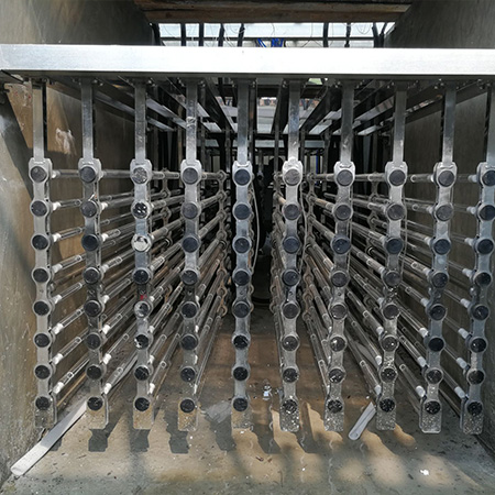 石英套管表面的结垢往往会对紫外消毒效果产生很大影响,使紫外消毒强度大幅降低。UV消毒装置自带清洗装置采用自主技术。本清洁技术可在不影响设备运行的前提下,在线自动清洗套管表面,达到清洁、低摩擦、无卡死的目的,为紫外消毒系统提供稳定的杀菌效果。